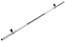 Cette barre de musculation olympique de 130 cm en acier chromé est fournie avec ses 2 stop disques à embouts plastifiés. Elle convient à des disques d’un diamètre de 28 mm.