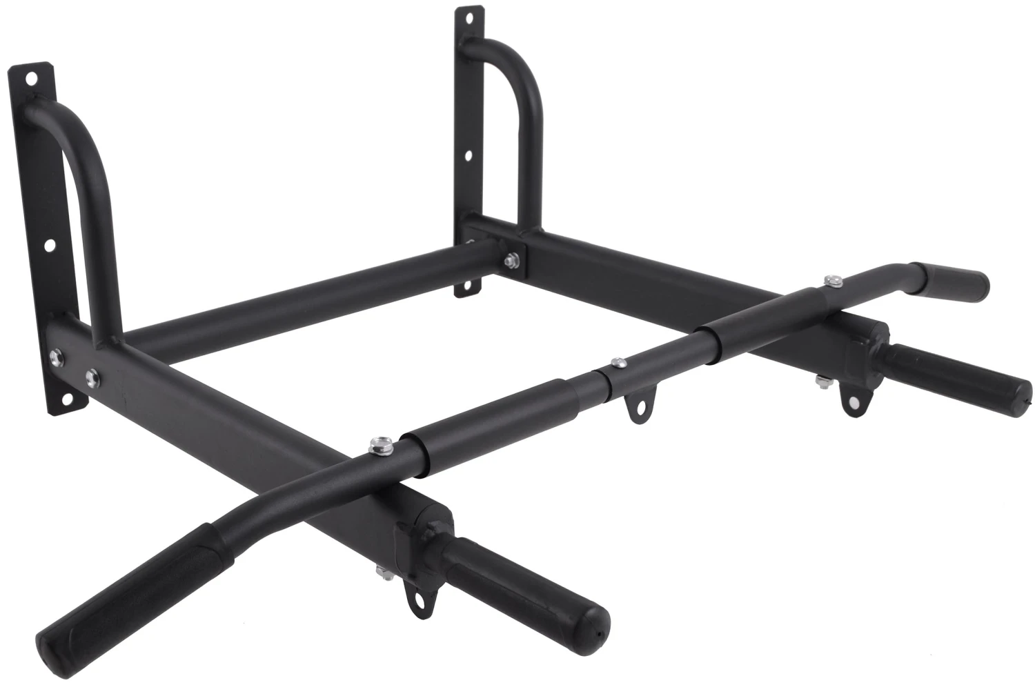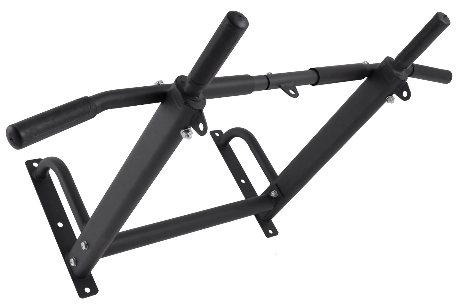 Cette barre se fixe au mur à l’aide de 6 vis et boulons et permet de pratiquer les tractions en utilisant plusieurs prises.