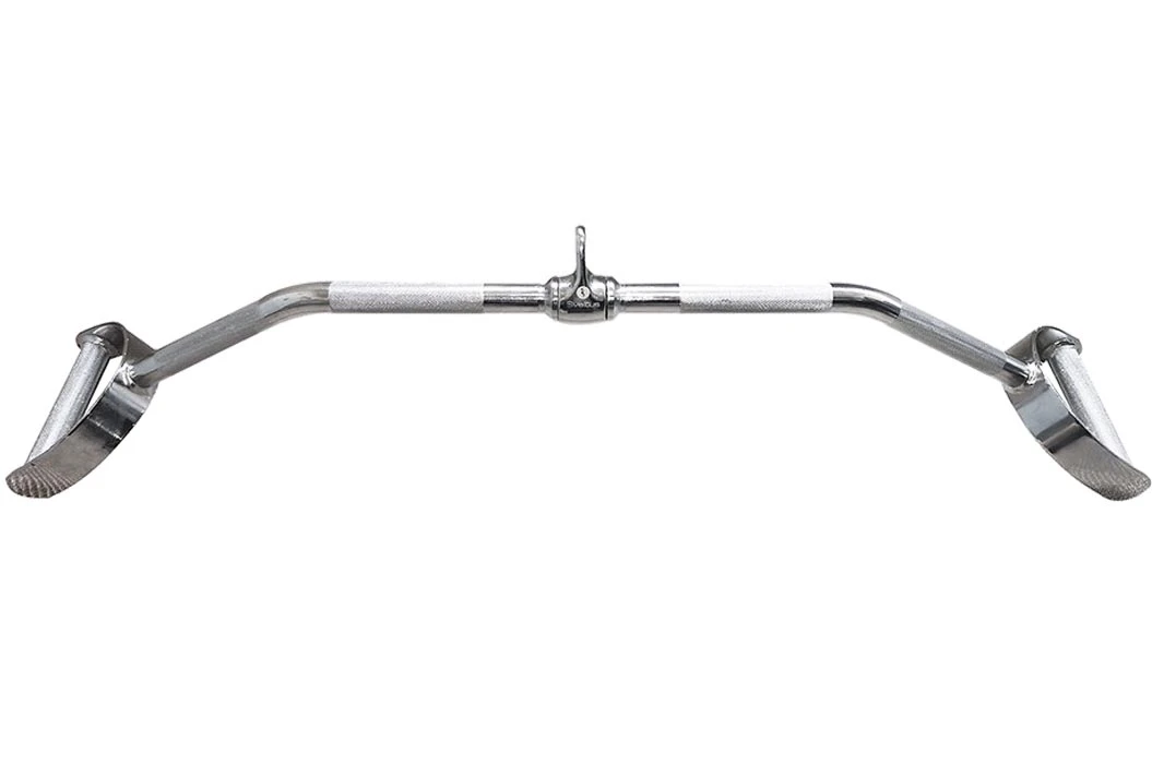 Montable sur une machine à câble ou à poulie. Une surface antidérapante permet de ne pas perdre la barre durant l’exercice.