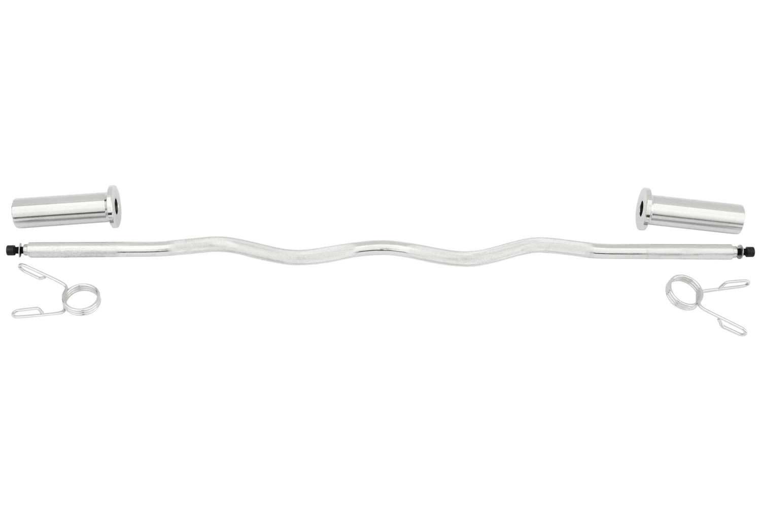 Barre Olympique Cross-training, chrome, pouvant supporter jusqu’Ă 200 kg. Très bonne prise en main.