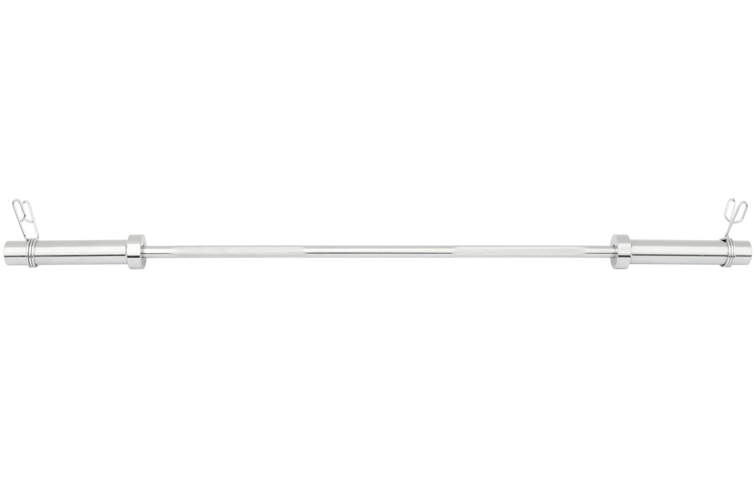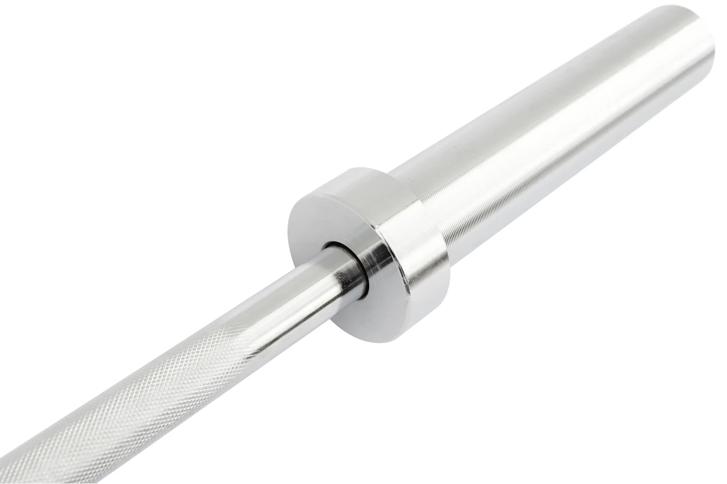 Barre Olympique Cross-training, chrome, pouvant supporter jusqu’à 250 kg. Très bonne prise en main.