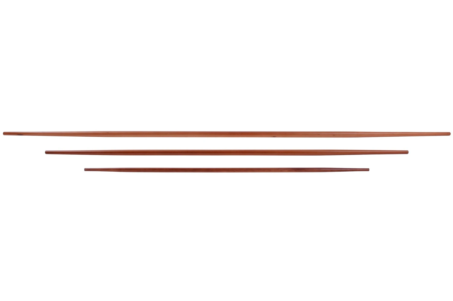Bâton double pointes en chêne rouge. Ce modèle existe en 3 dimensions selon l’aisance et la préférence dans la pratique : 127 cm, 152 cm, 183 cm.
