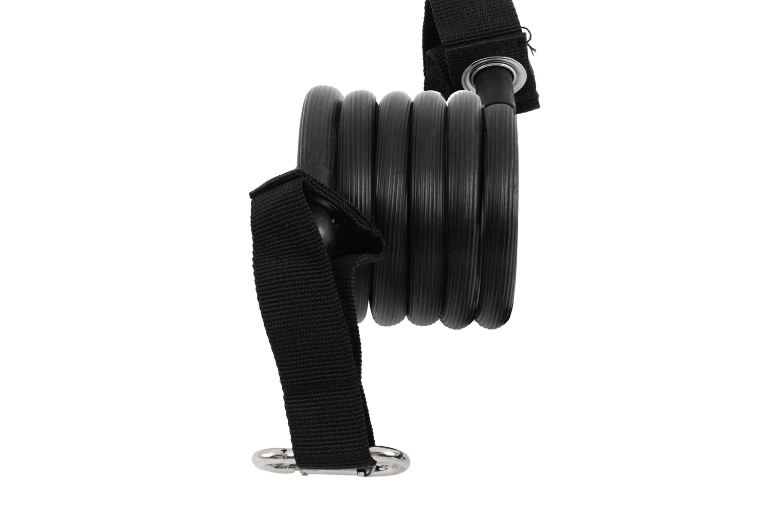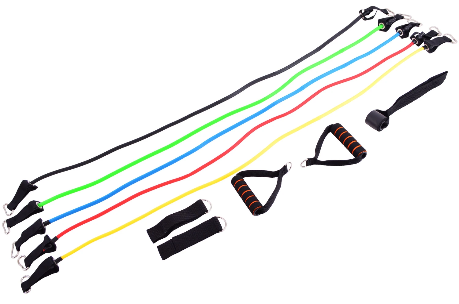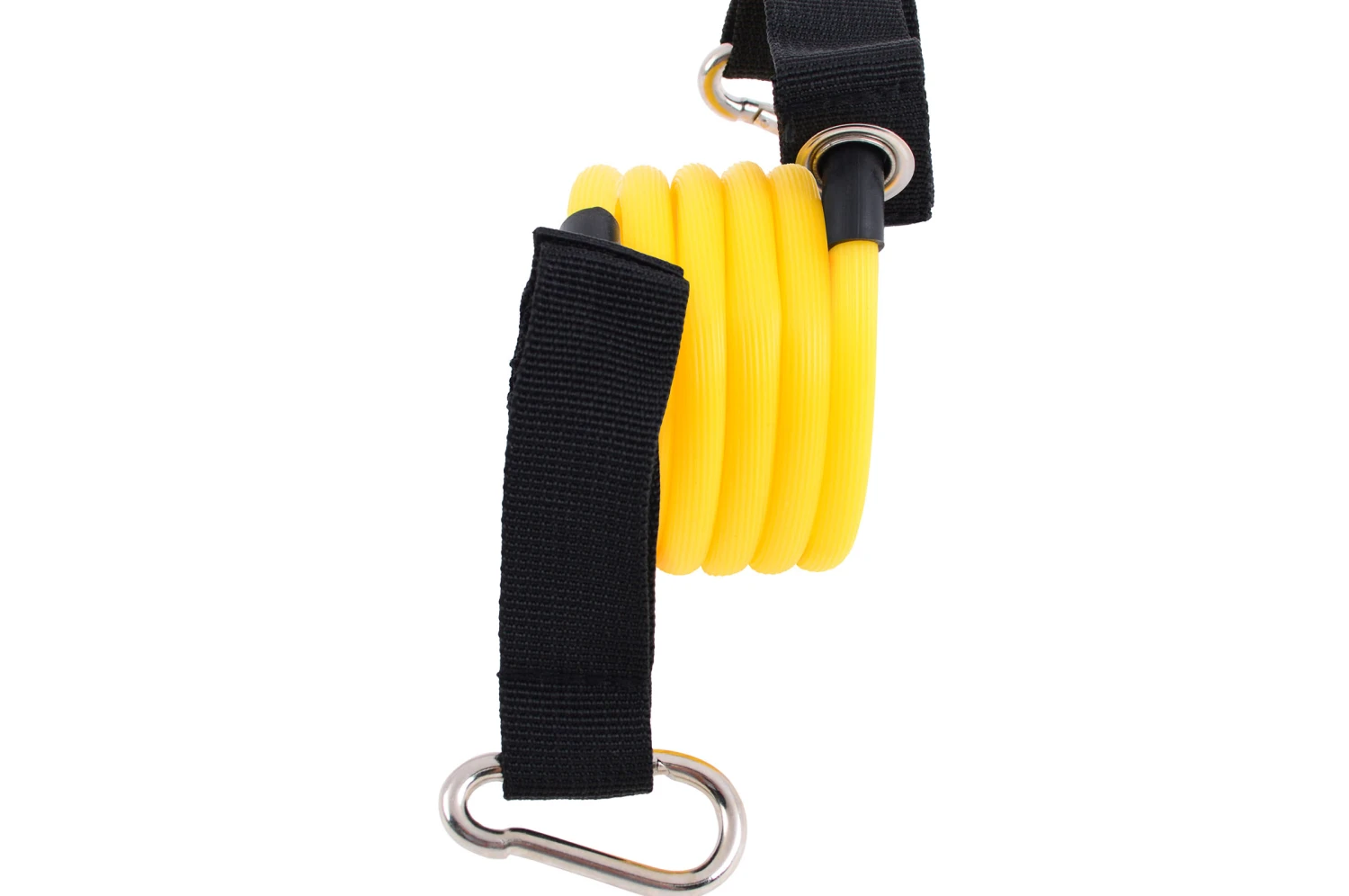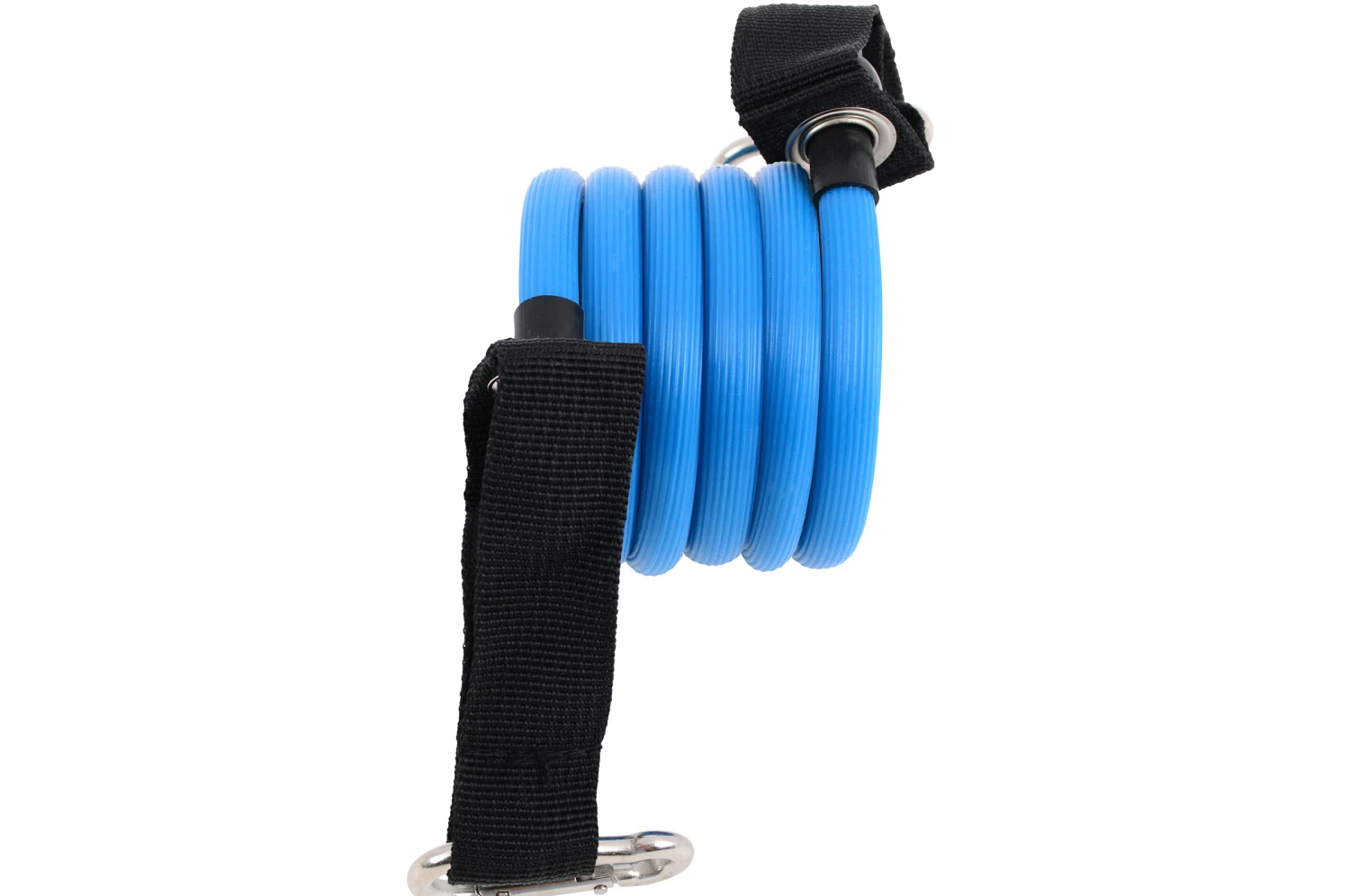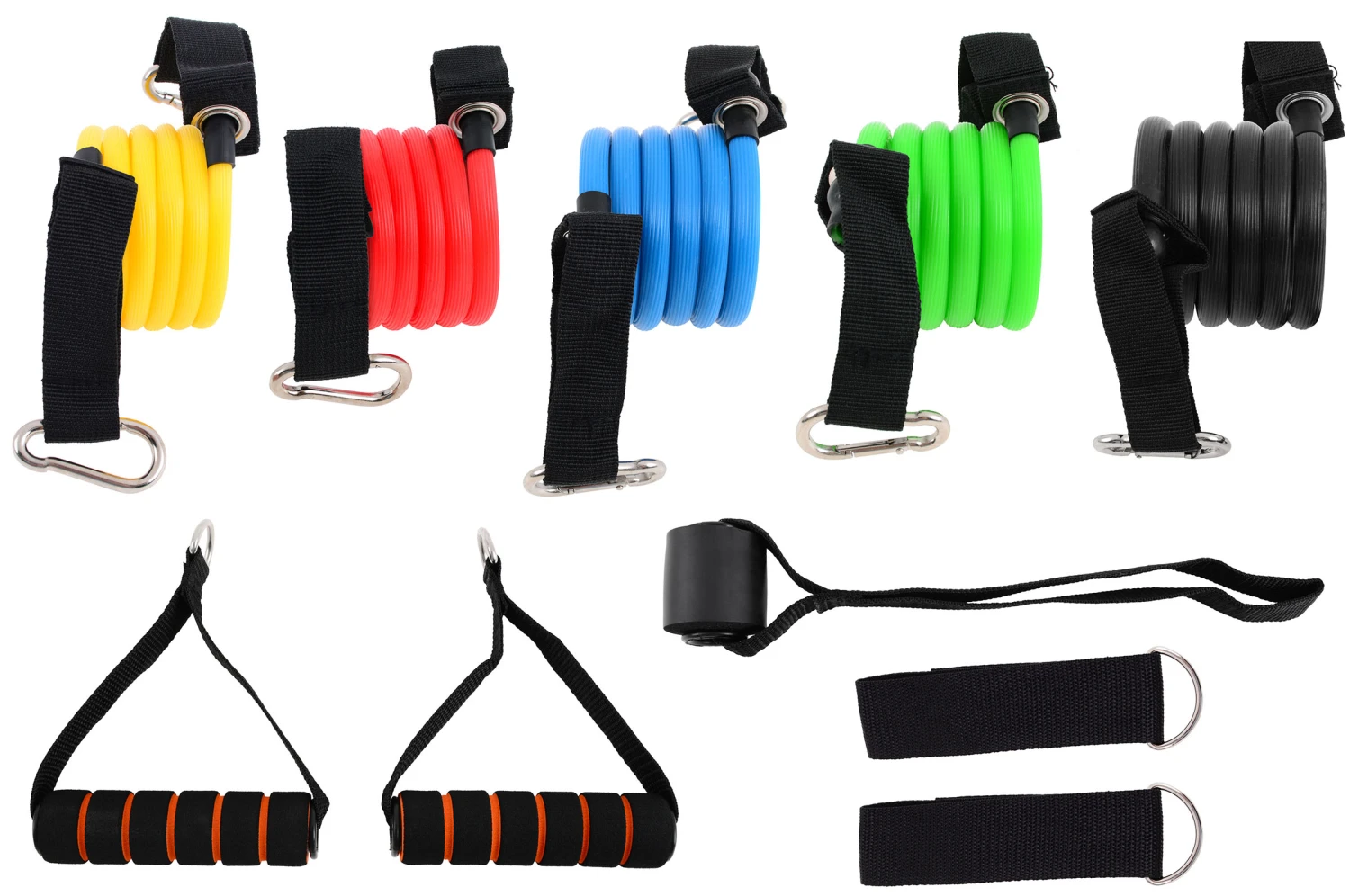 - 5 élastiques de résistance pouvant aller de 4,5 kg à 45,3 kg.