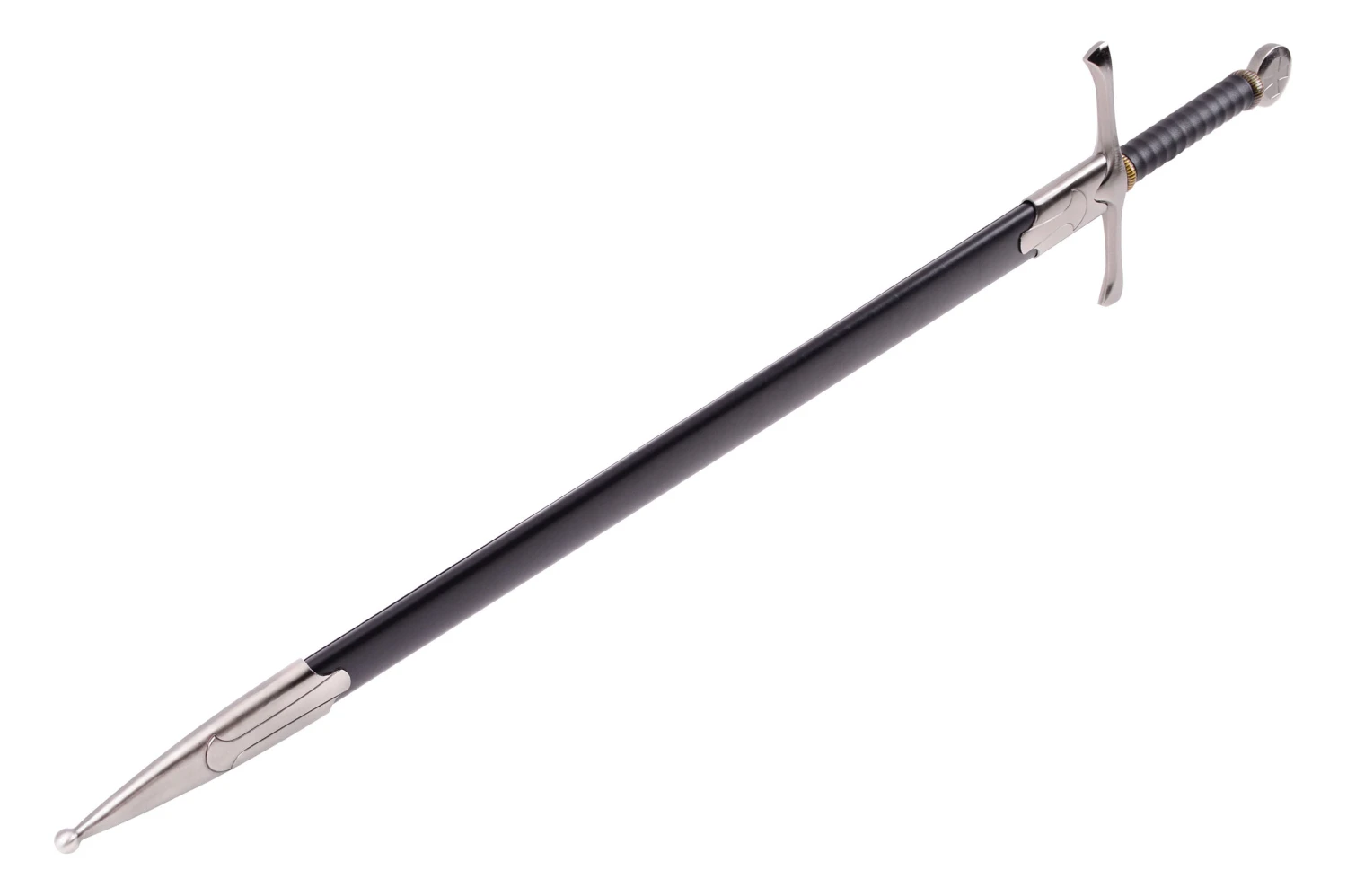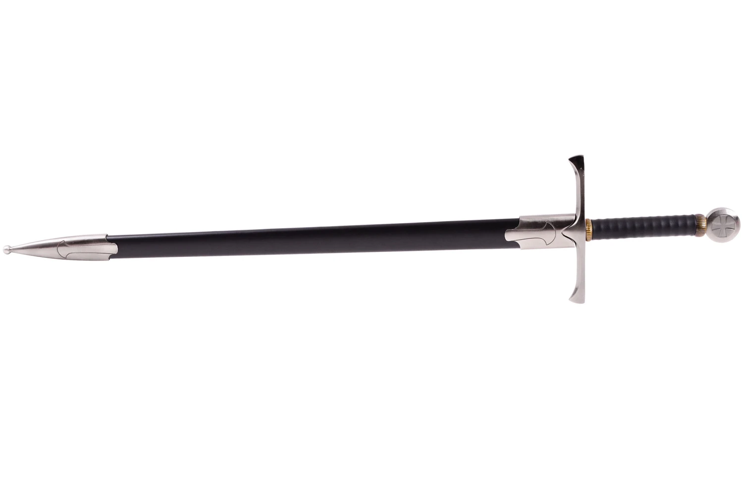 Épée et Fourreau avec Cuir PU et décorations argentées & dorées. Pommeau Rond avec croix de Templier.