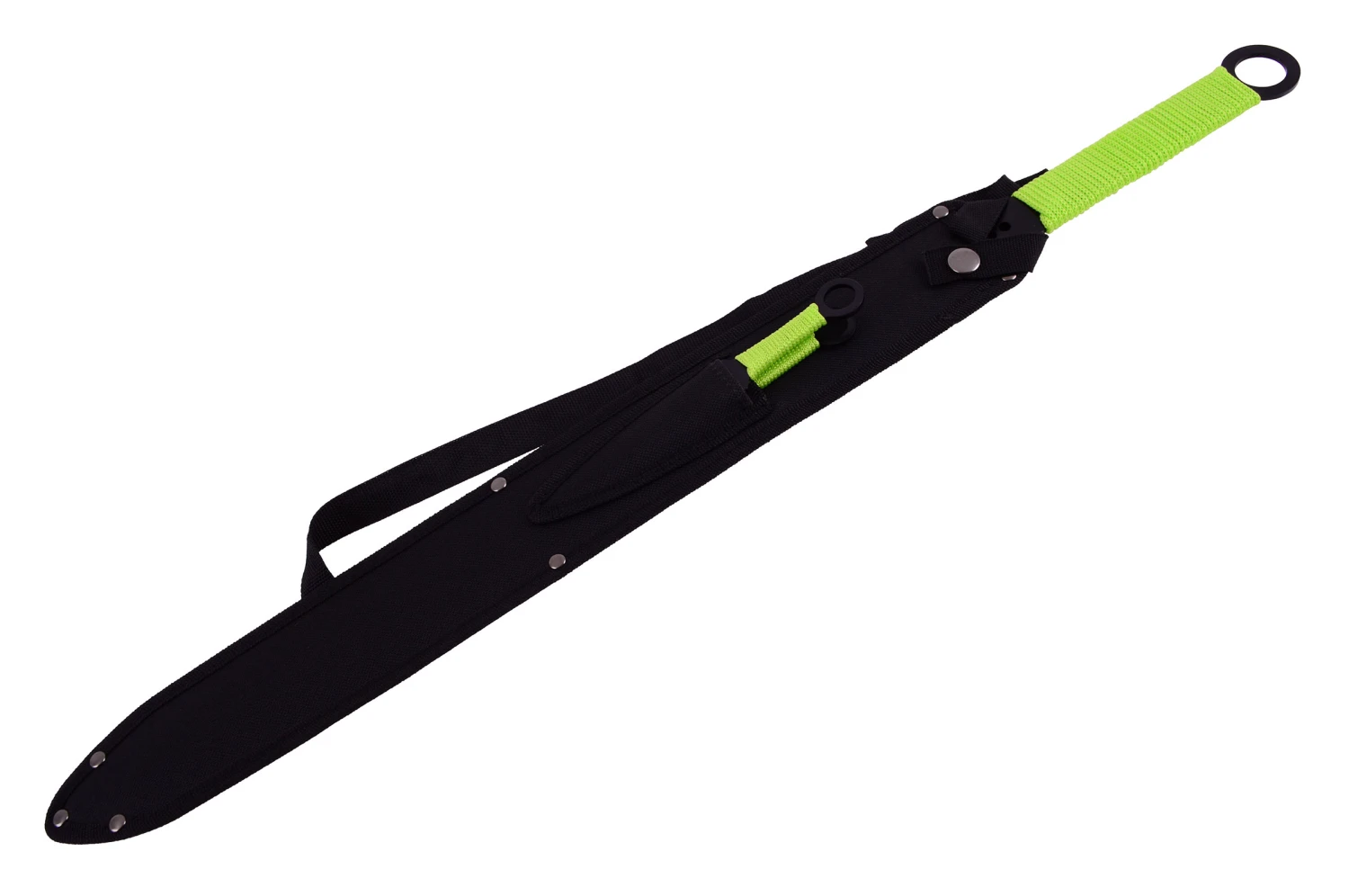 Lot comprenant une épée ninja et deux kunai avec poignées tressées