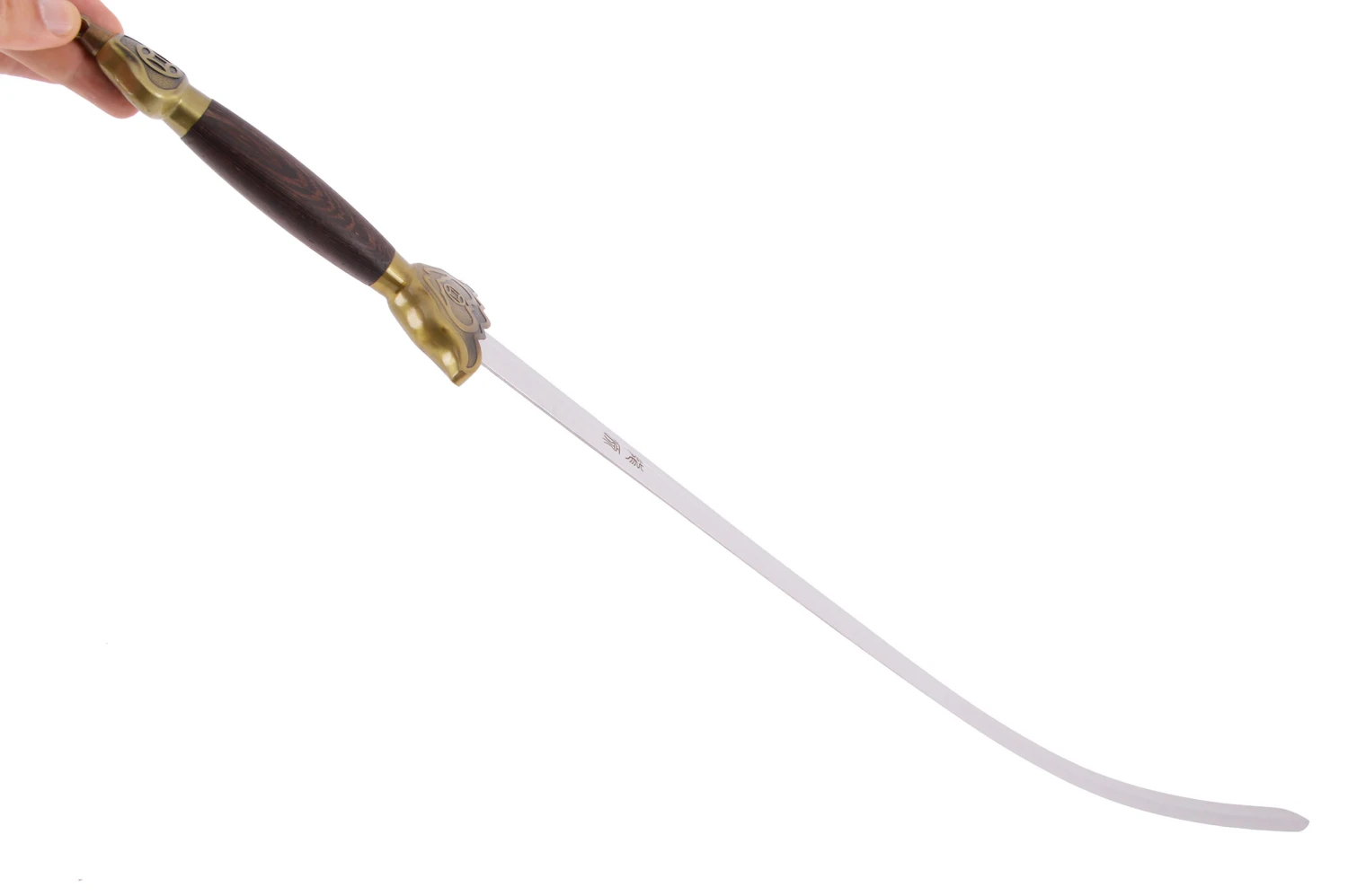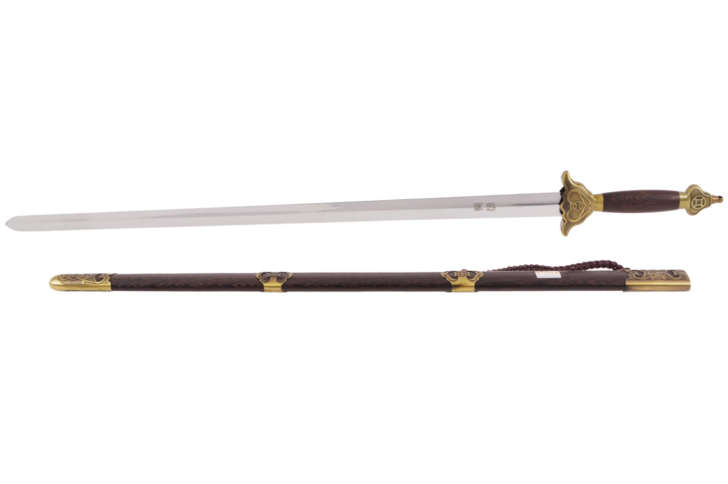 Fabriquée par la forge Jiang, spécialisée dans la fabrication d’épées tai ji légères, la lame à section diamant est en acier inox 420 semi flexible.