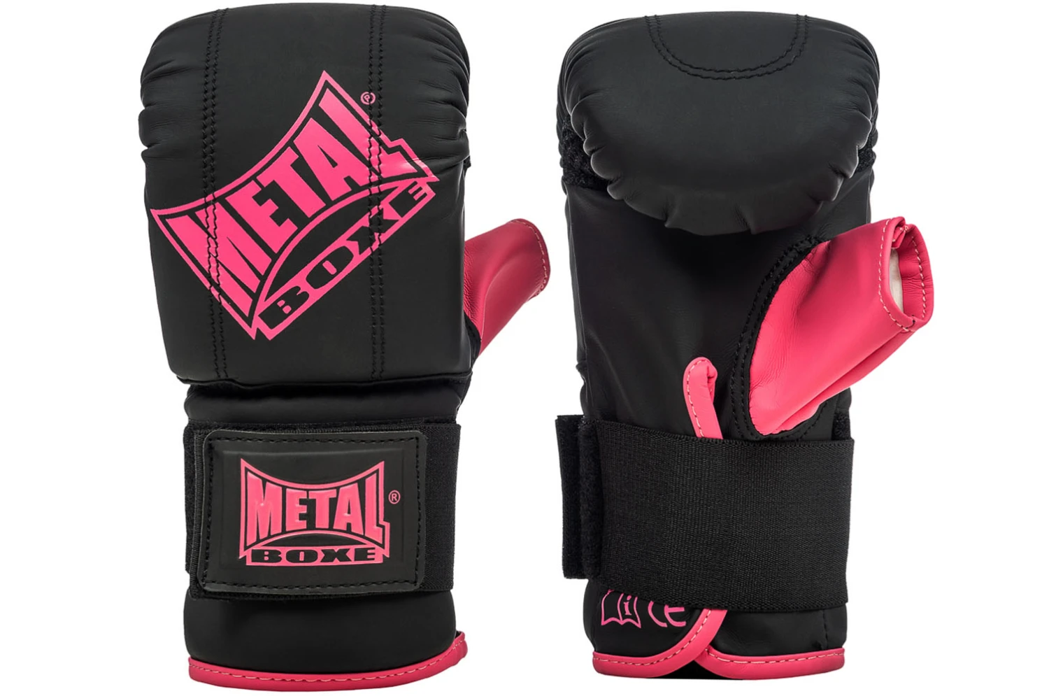 Gants de sac Metal Boxe, spécialement conçu pour s’adapter à la morphologie féminine. Son enveloppe en cuir PU et son rembourrage avec la mousse préformée ergonomique apportent une grande protection et un maintien optimal lors de l’impact grâce au velcro élastiqué.