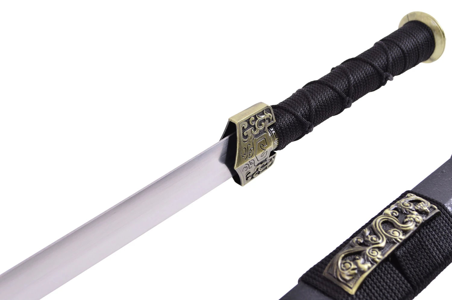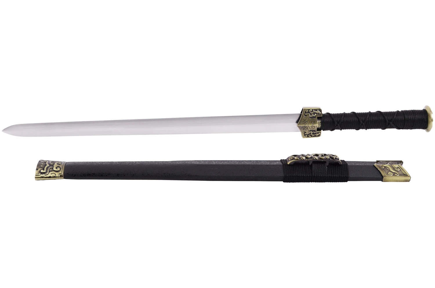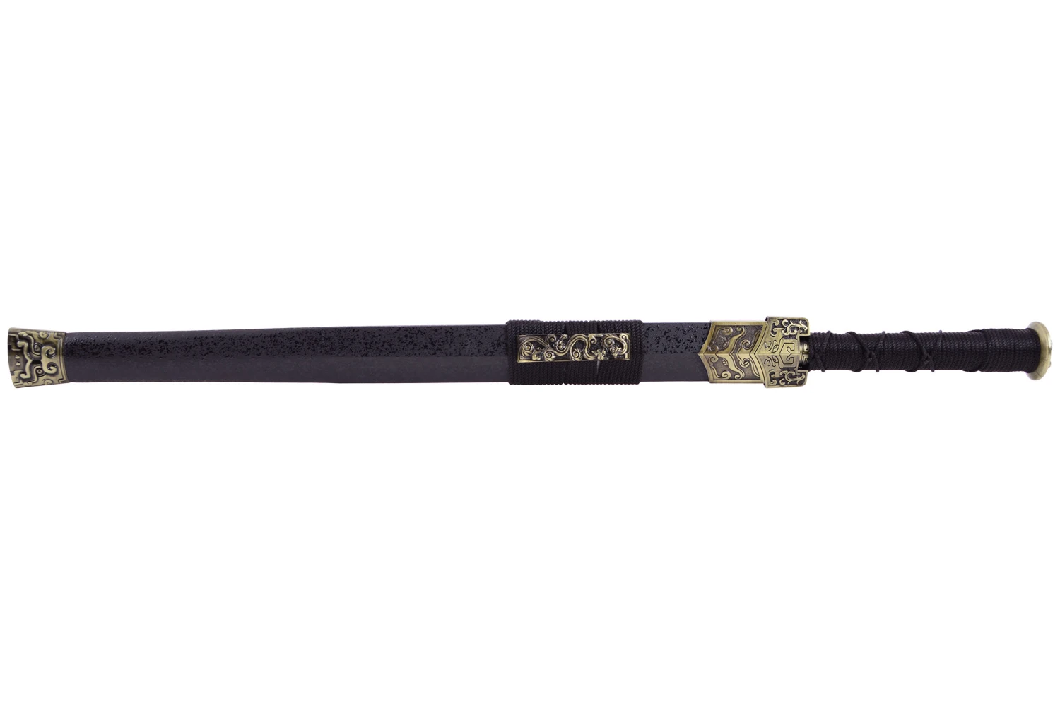 Glaive avec fourreau noir effet « Peau de Requin » et une lame rigide.