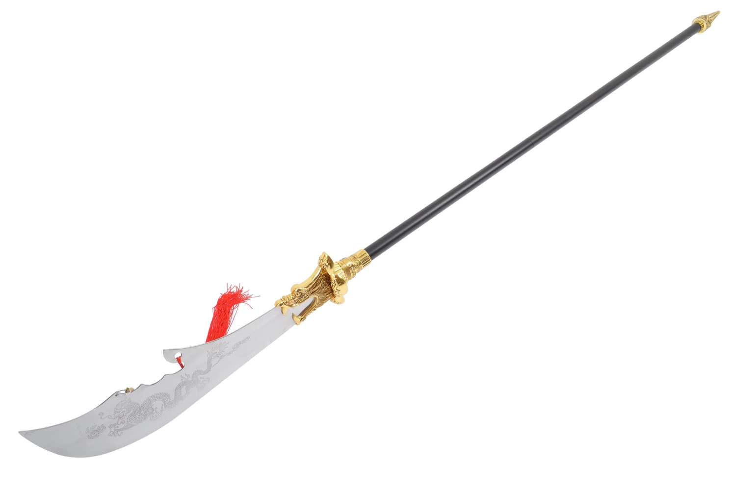 Nouveau modèle d’hallebarde dĂ©montable issue des forges de Longquan dans l’esprit des hallebardes Guan yue mais en plus lĂ©gère pour facliter la pratique. Lame en inox Ă©pais, non aiguisĂ©e, pièces ornementales en Zamak, manche en acier inox peint.