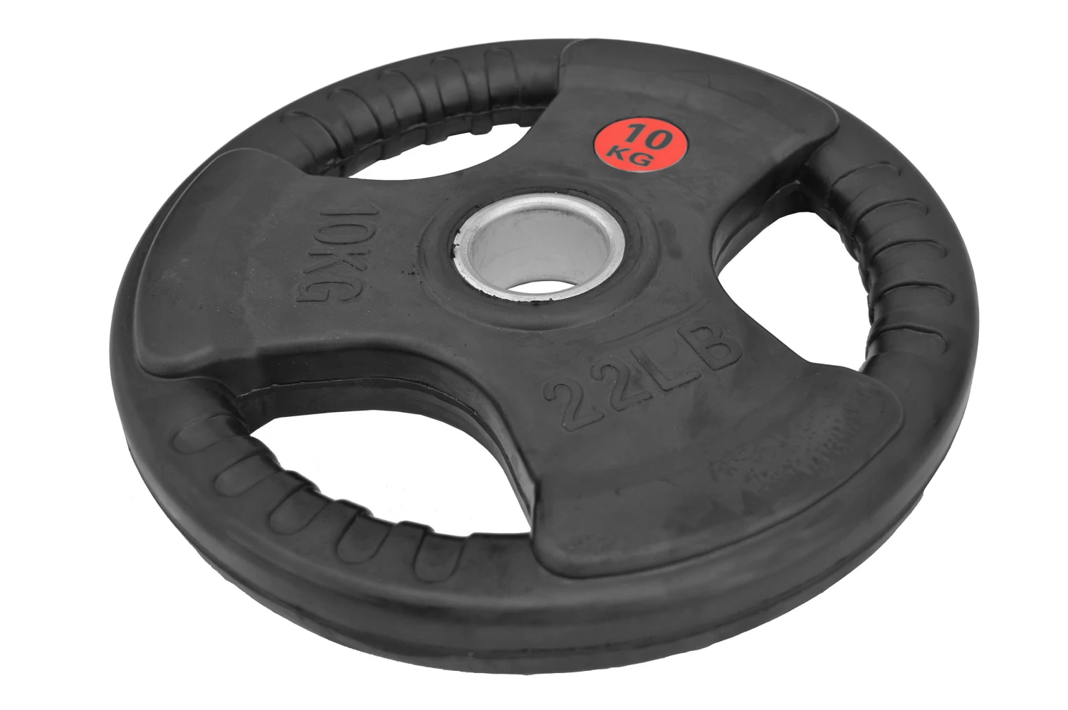 Acier moulé recouvert d’un revêtement caoutchouc épais par mesure de sécurité en cas de chute. Des poignées permettent une saisie facile et évite que le poids glisse des mains.