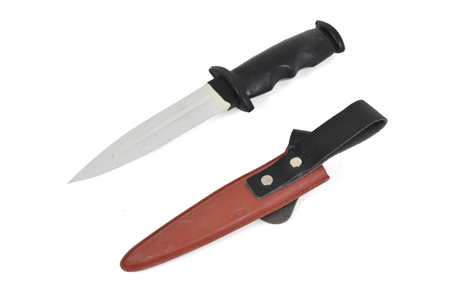 Réplique en plastique d’un poignard. Poignée en plastique rigide, et la lame est en plastique souple.