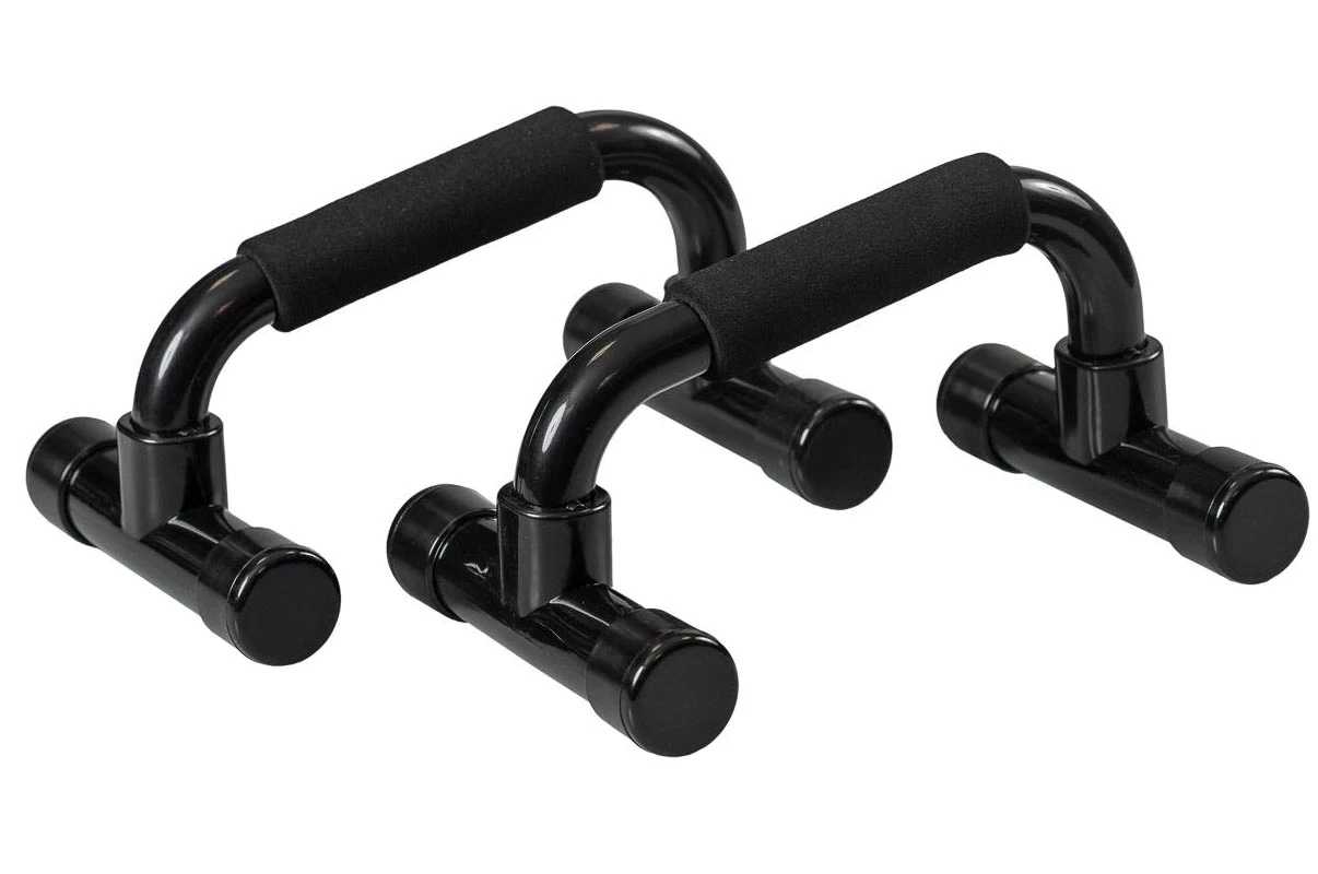 Support poignées en plastique noir pour faire des pompes.