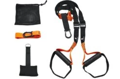 Cet accessoire est idéal pour un entraînement au poids du corps grâce à un système d’entraînement par suspension. Il se fixe facilement et rapidement (encadrements de porte, barres, arbres, poteaux, etc) et possède des sangles totalement ajustables.