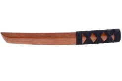 Ce tanto est en bois de chêne verni rouge avec un manche tressé noir.